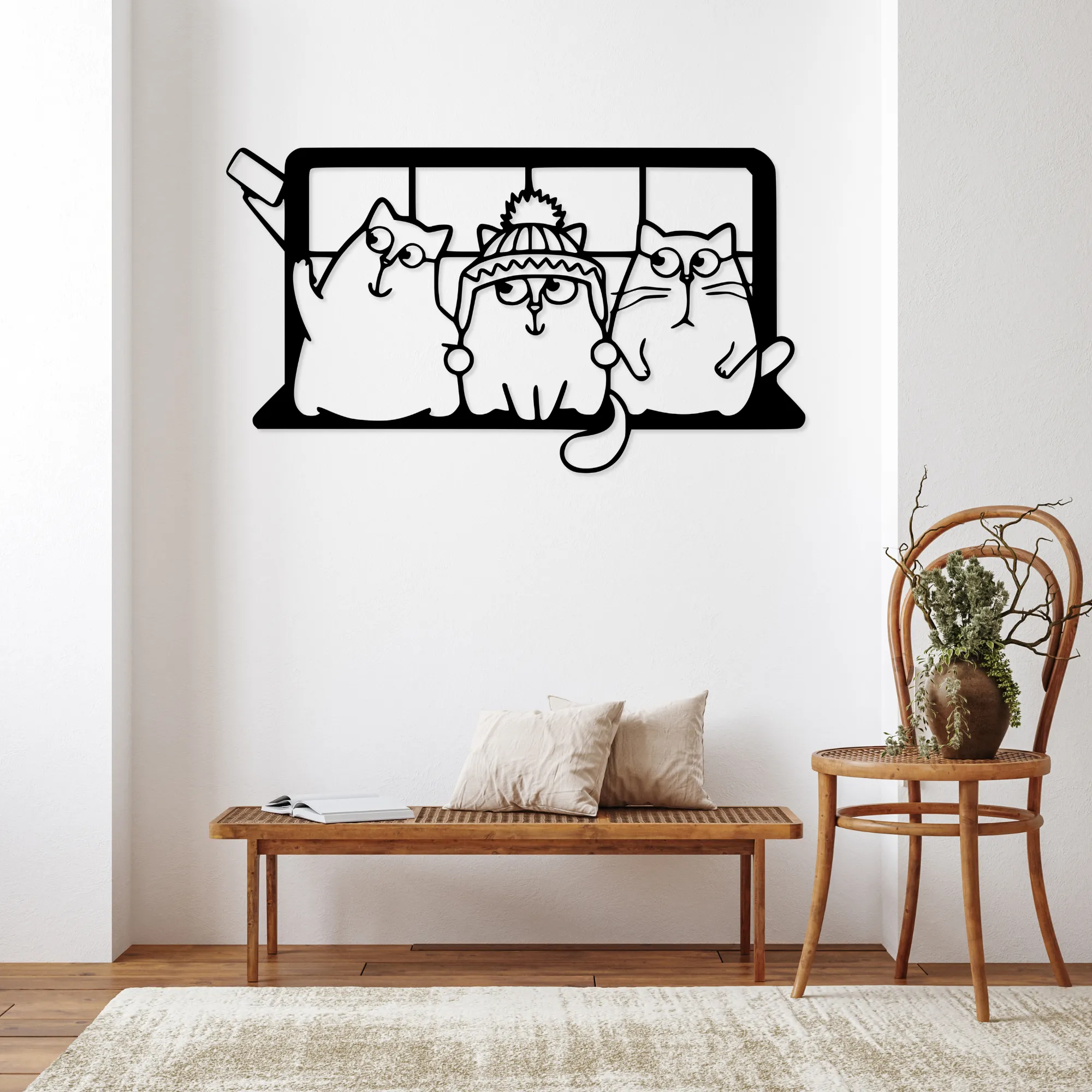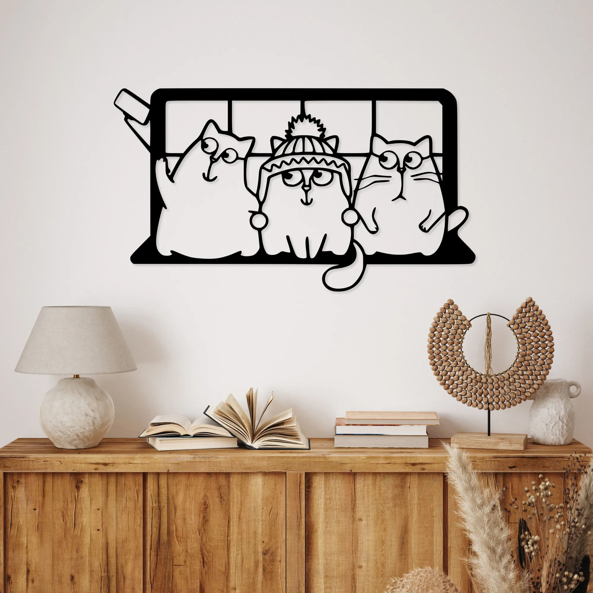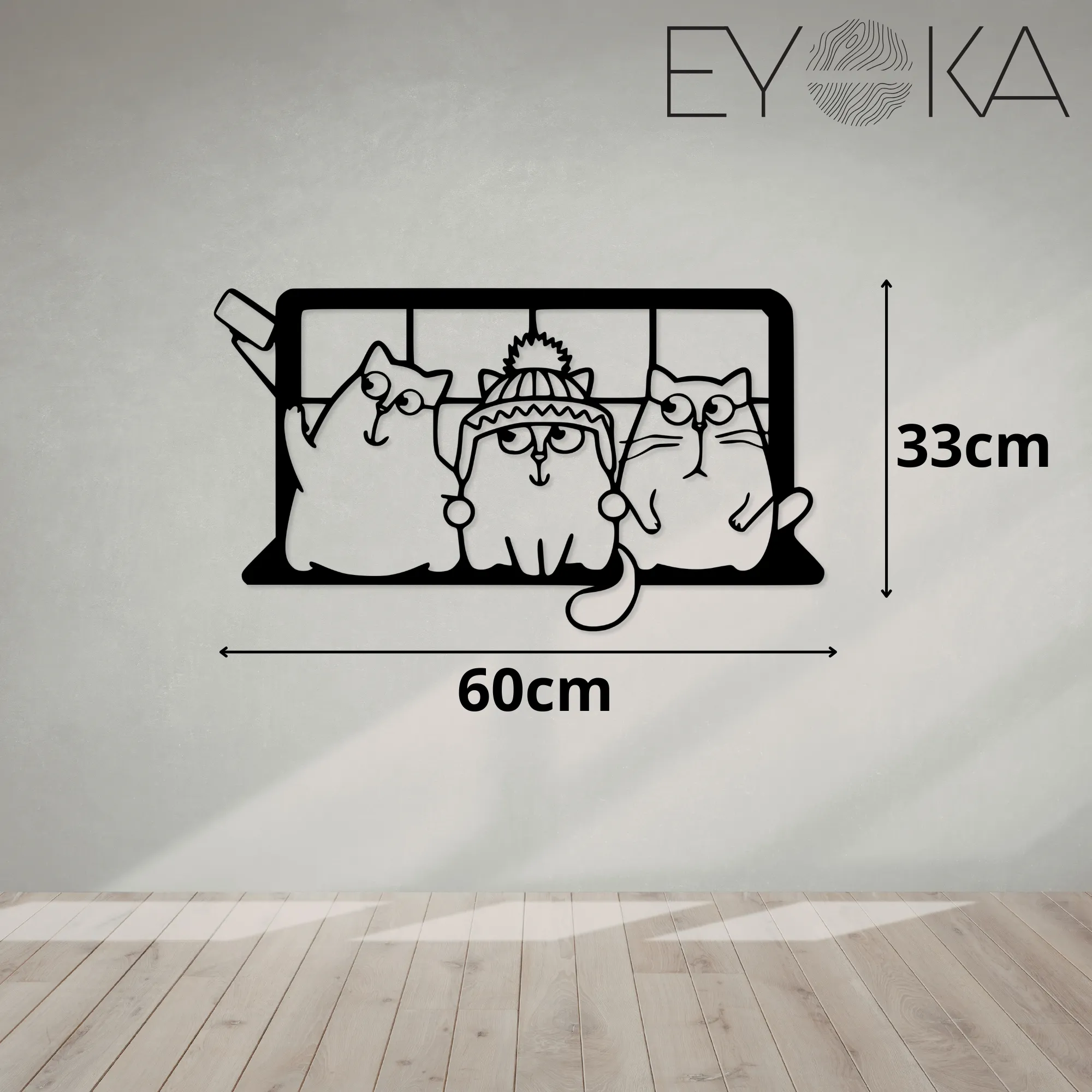 Ażurowa konstrukcja i efekt 3D powodują, że obraz subtelnie odcina się od ściany, tworząc delikatną grę światła i cienia. Bajkowa forma kotów sprawia, że dekoracja jest lekka wizualnie, przyjazna i idealna zarówno do wnętrz rodzinnych, jak i tych urządzonych z myślą o dzieciach.