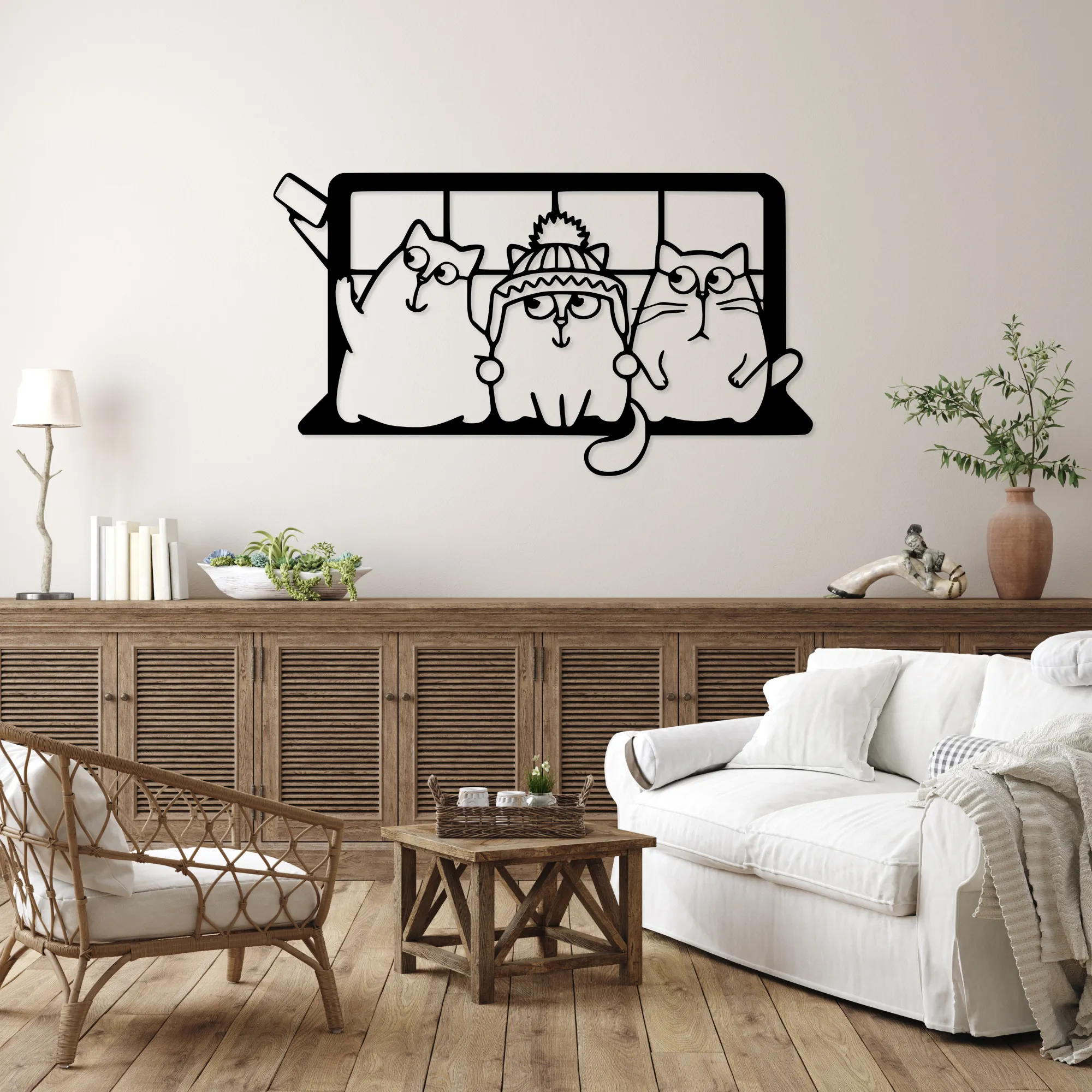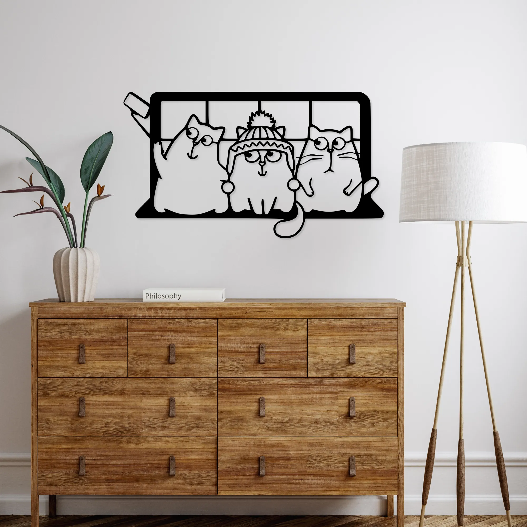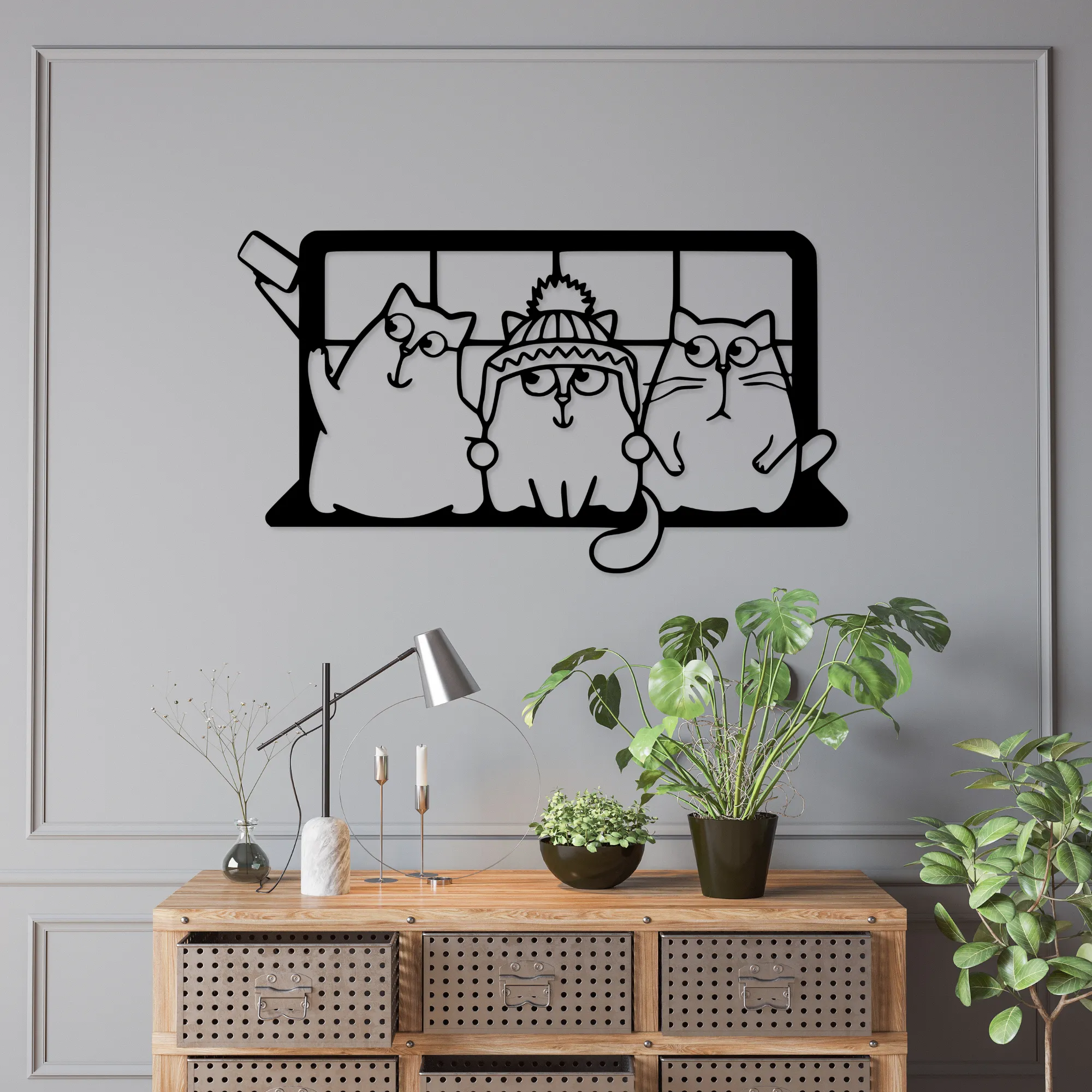 Ażurowa konstrukcja i efekt 3D powodują, że obraz subtelnie odcina się od ściany, tworząc delikatną grę światła i cienia. Bajkowa forma kotów sprawia, że dekoracja jest lekka wizualnie, przyjazna i idealna zarówno do wnętrz rodzinnych, jak i tych urządzonych z myślą o dzieciach.