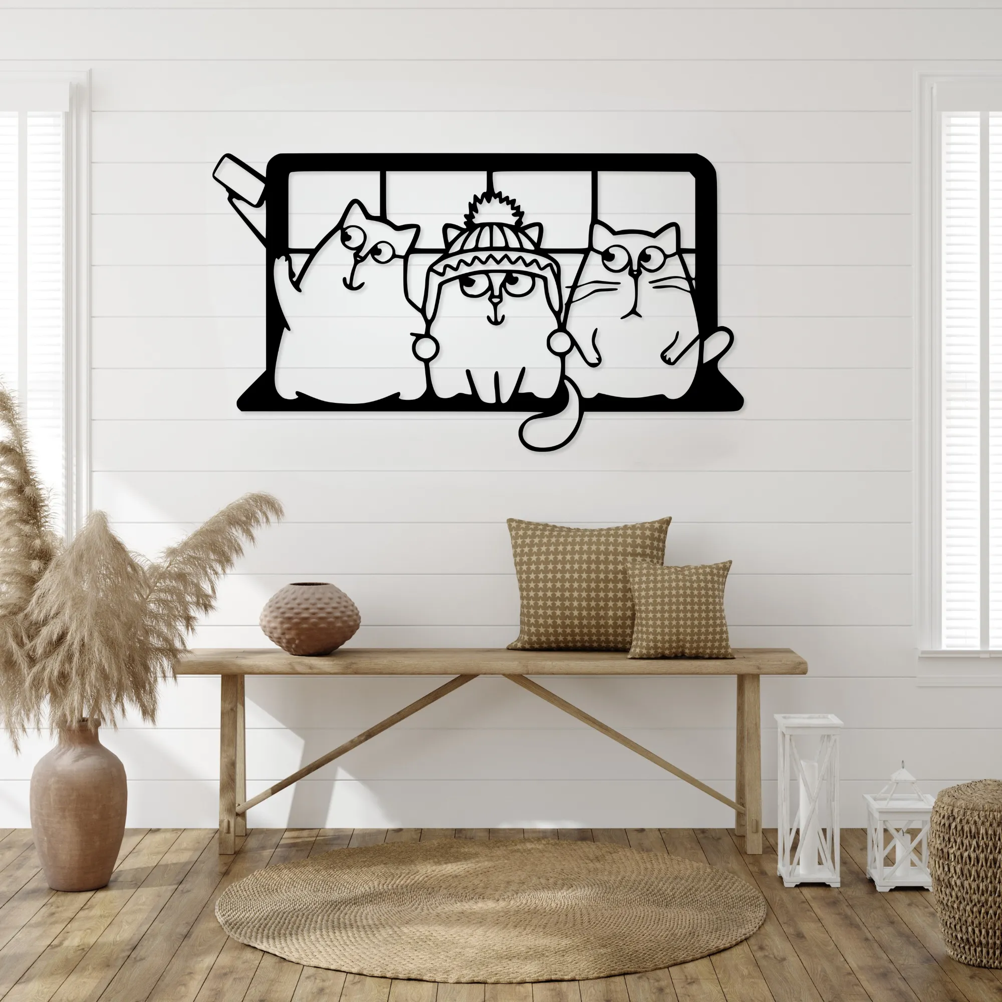 Motyw kotów w oknie wprowadza do wnętrza przytulny, ciepły klimat i sprawia, że przestrzeń staje się bardziej „domowa”.