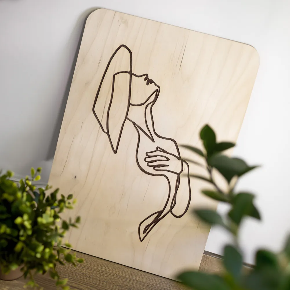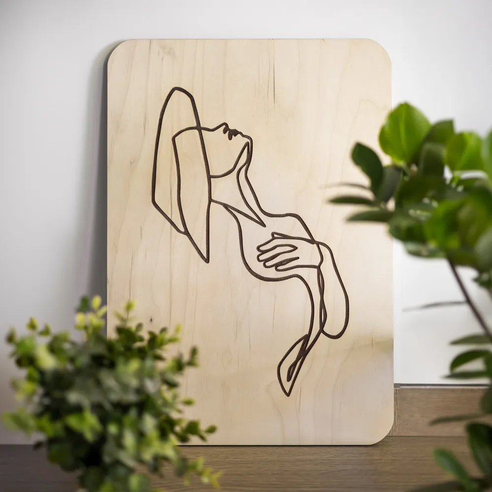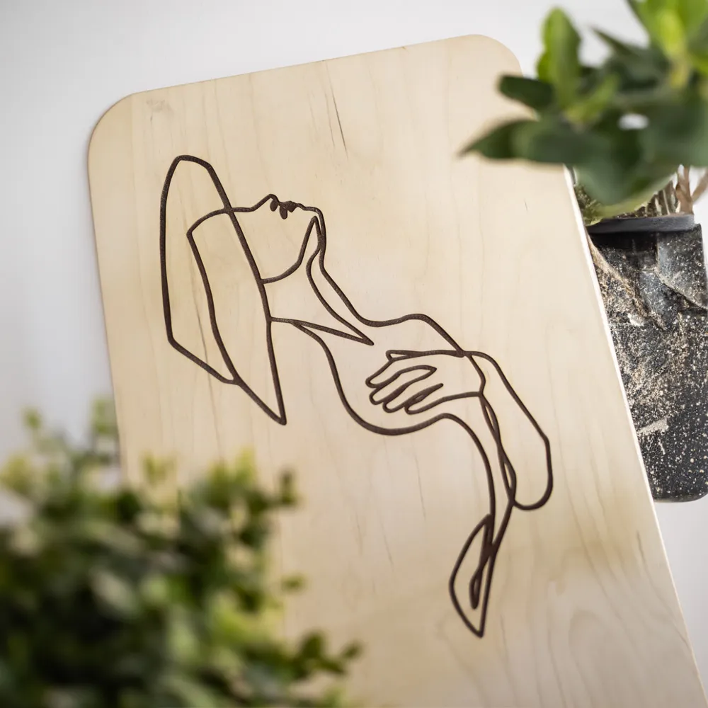 Obraz „Ciało Kobiece” – grawerowana dekoracja ścienna ze sklejki brzozowej 6 mm | Sztuka minimalizmu i kobiecej siły