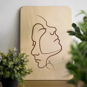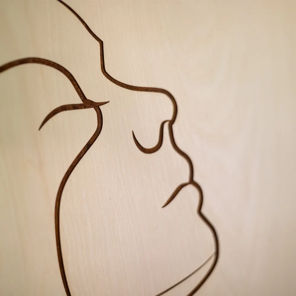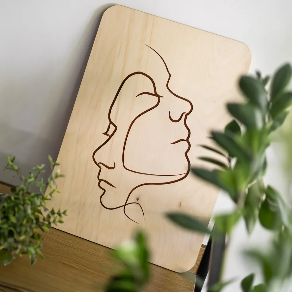Obraz „Linie dwóch dusz” – grawerowana dekoracja ścienna ze sklejki brzozowej | Symbolika bliskości i emocjonalnej więzi