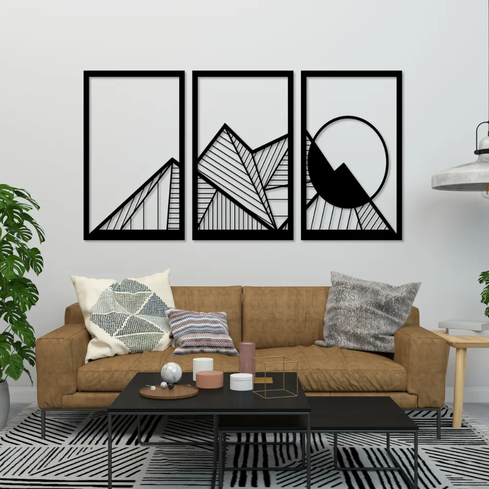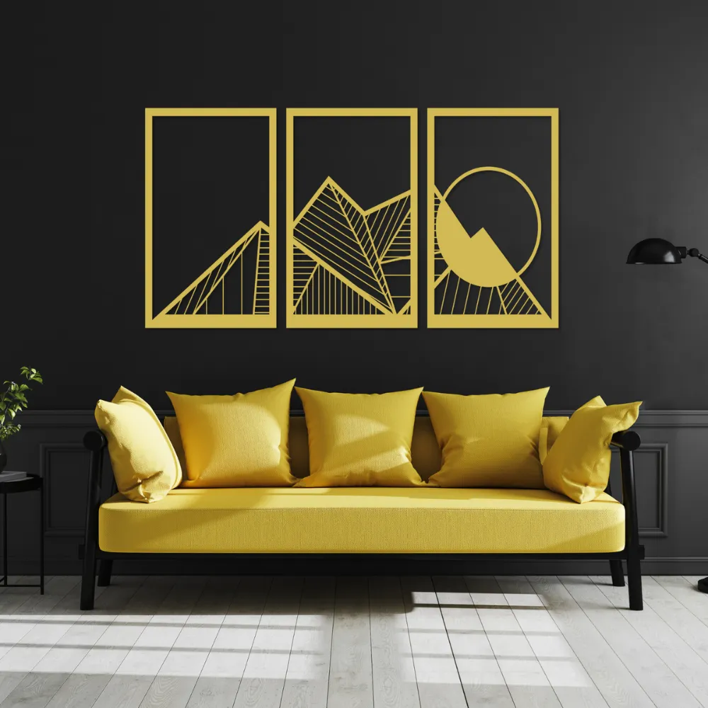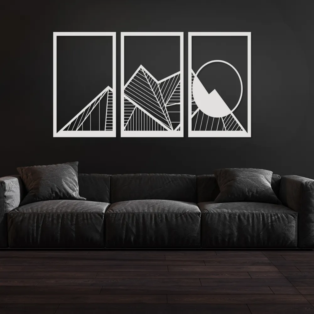 Dodaj wyjątkowego charakteru swojej przestrzeni dzięki dekoracji ściennej „Góry geometryczne”. Ten nowoczesny obraz w stylu line art to idealne połączenie prostoty formy z inspiracją zaczerpniętą z natury. Wykonany z wysokiej jakości płyty MDF o grubości 6 mm, stanowi stylowy akcent do każdego wnętrza – od skandynawskiego po loftowe i nowoczesne.