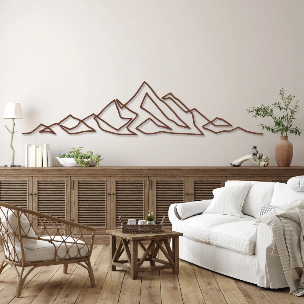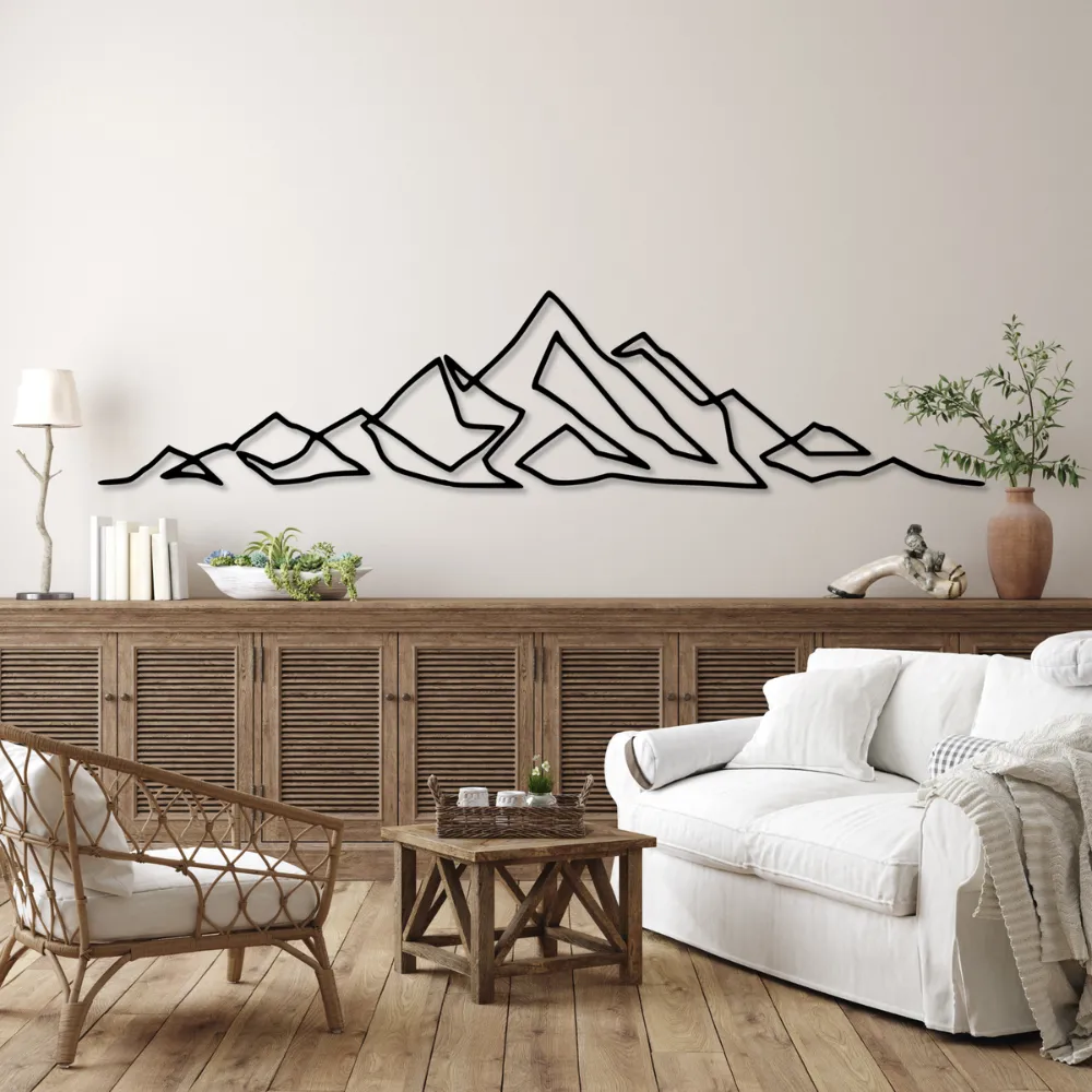 Line art to styl, który zyskał ogromną popularność dzięki swojej prostocie i elegancji. Geometryczny wzór gór staje się subtelną, ale wyrazistą ozdobą każdej ściany. Świetnie komponuje się z innymi elementami wystroju, zarówno w nowoczesnych, jak i klasycznych aranżacjach.
