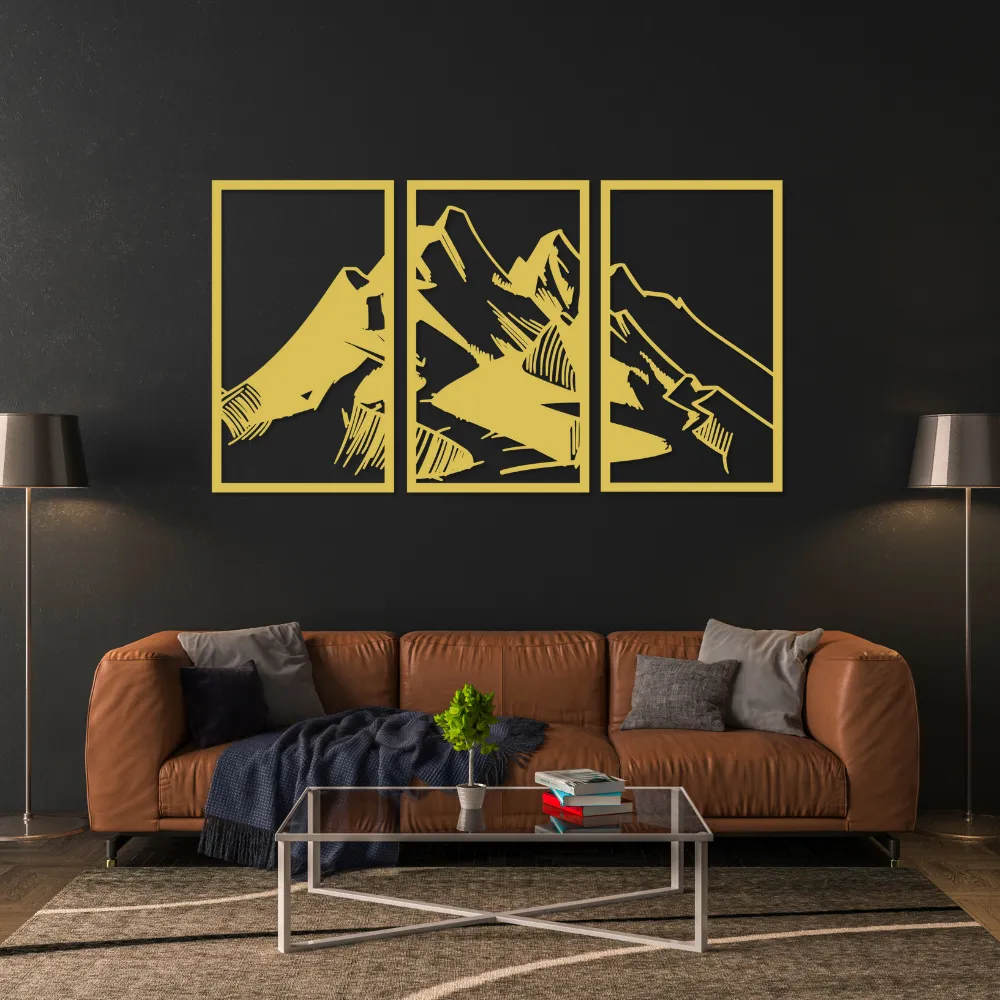 Nowoczesny motyw geometrycznych gór w stylu line art przyciąga wzrok i dodaje wnętrzu charakteru. Idealny jako dekoracja: