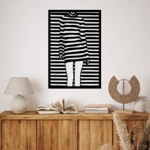OBRAZ ŚCIENNY "kobieta w pasy" – KOBIETA Z WINEM Z MDF 6 MM | STYLOWA DEKORACJA DLA WYSZUKANEGO WNĘTRZA