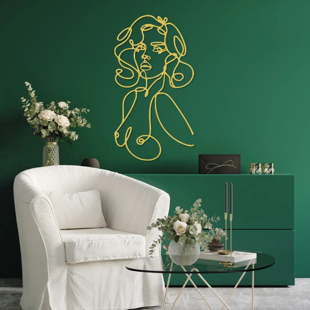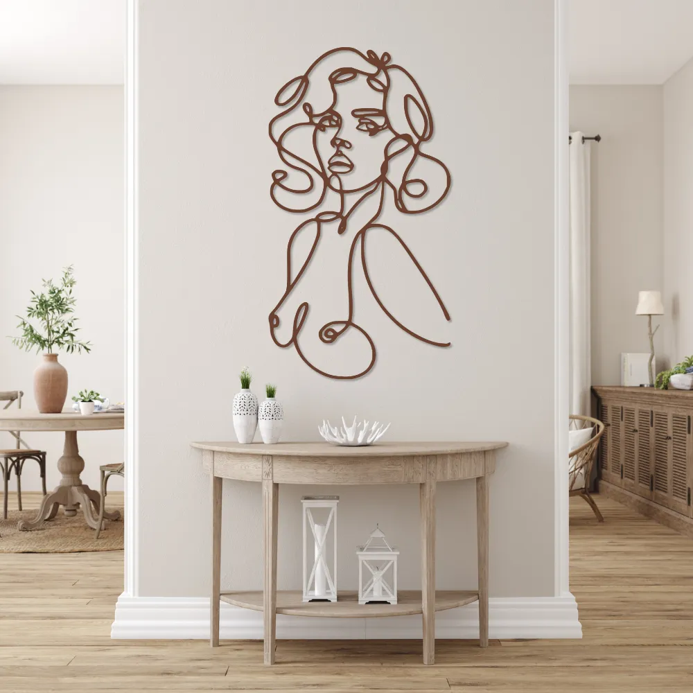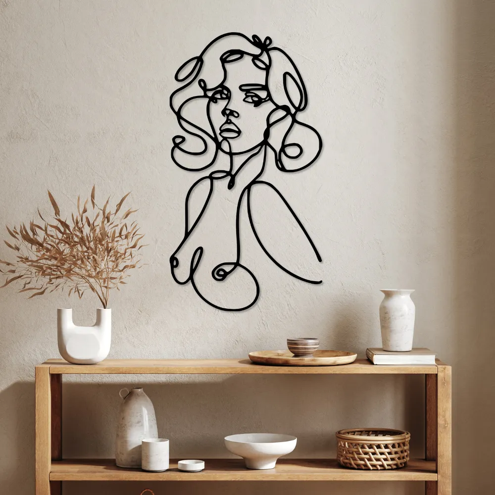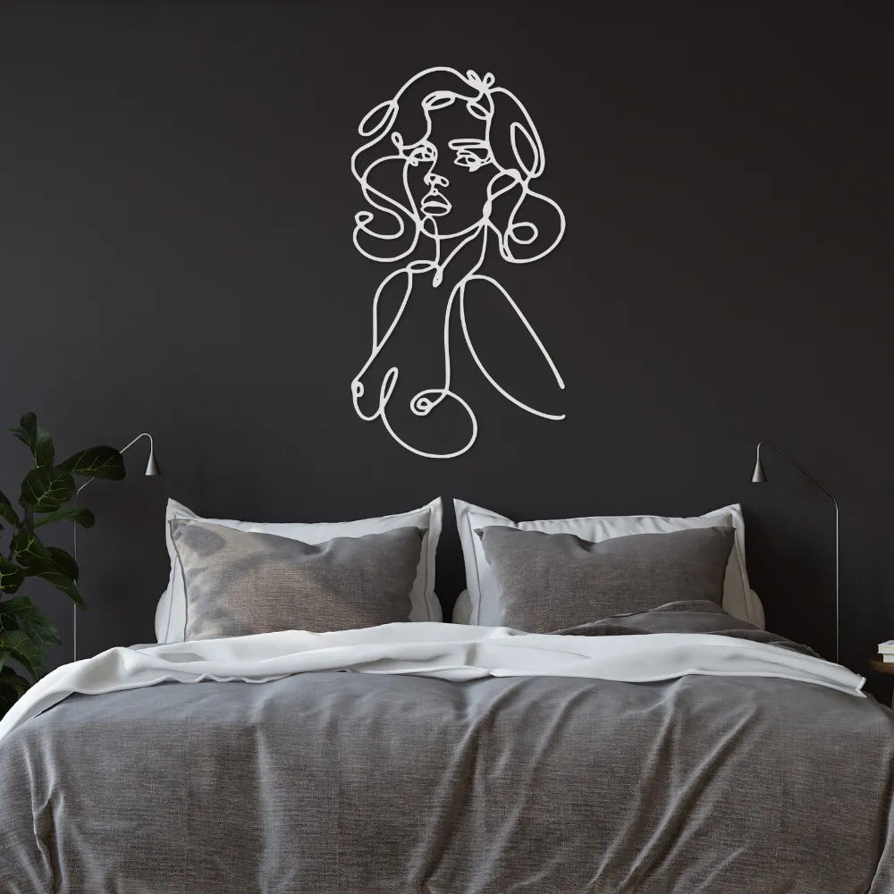 Podkreśl delikatność, siłę i piękno kobiecej natury dzięki obrazowi ściennemu „Liniowy Portret Kobiecości”. Ta stylowa dekoracja w technice line art przedstawia subtelną sylwetkę kobiety wykreśloną jedną, ciągłą linią. Wykonana z płyty MDF o grubości 6 mm, łączy w sobie lekkość formy z solidnością materiału, tworząc wyjątkowy akcent do każdego wnętrza.