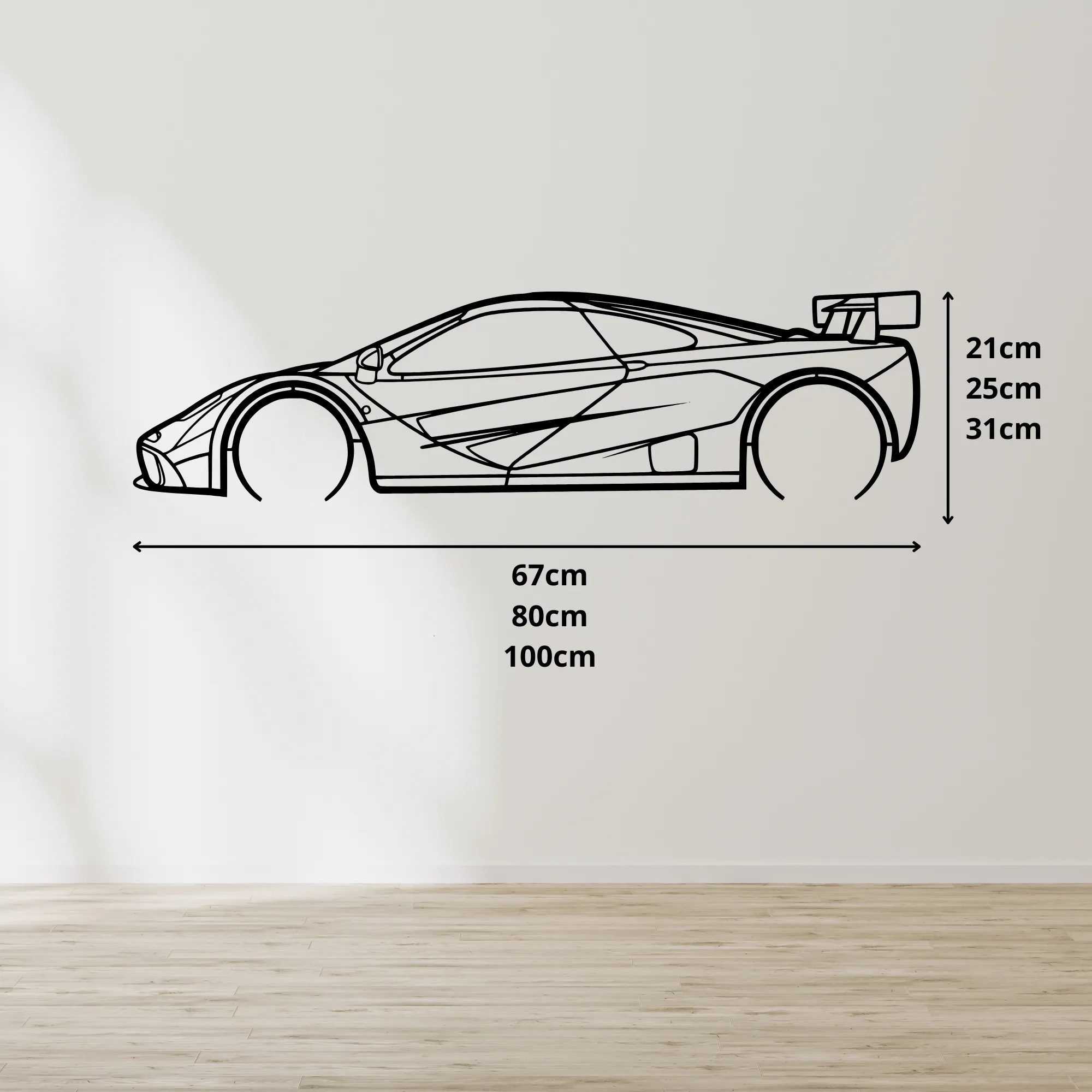 Wprowadź do swojego wnętrza ducha wyścigowej legendy dzięki wyjątkowemu obrazowi „McLaren F1 LM 1995”. Ten precyzyjnie wycięty kontur jednego z najbardziej ikonicznych supersamochodów XX wieku to idealna dekoracja dla każdego fana motoryzacji, prędkości i stylu. Wykonany z płyty MDF o grubości 6 mm – łączy solidność z lekkością.