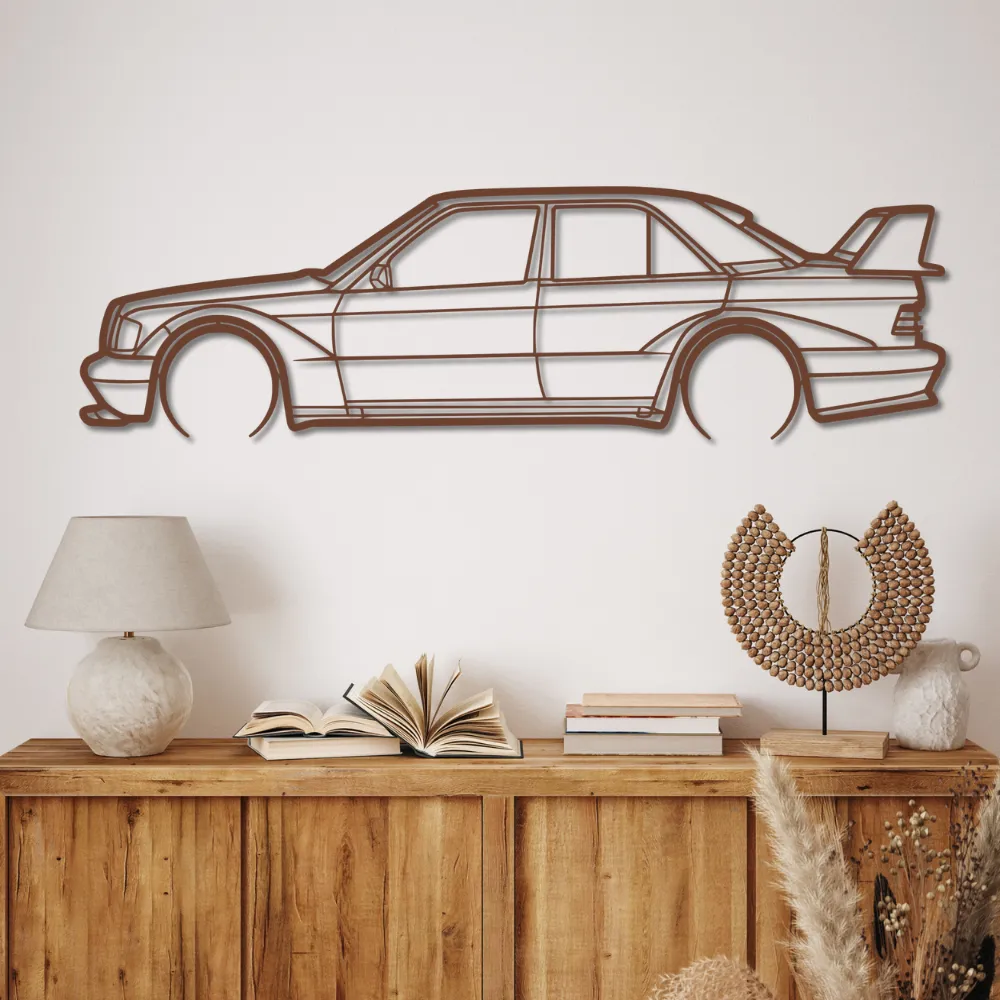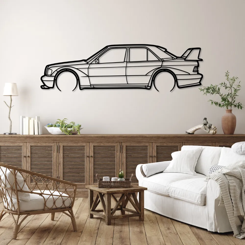 OBRAZ ŚCIENNY „MERCEDES 190 E” – KLASYCZNA SYLWETKA W STYLOWYM WYDANIU | MDF 6 MM | BEZZAPACHOWA DEKORACJA DO SALONU, BIURA LUB GARAŻU