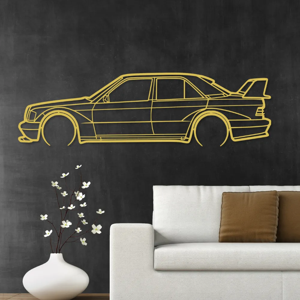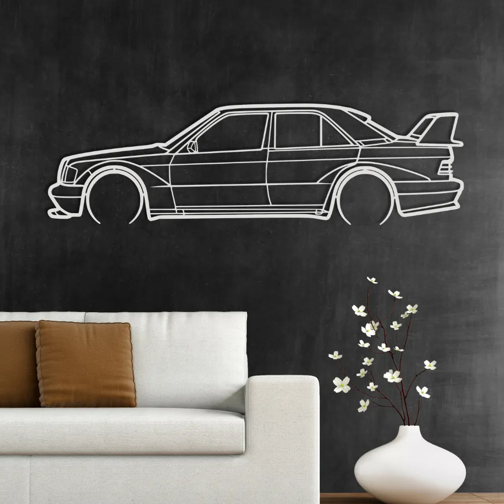 Model Mercedes-Benz 190 E to jeden z najbardziej rozpoznawalnych sedanów klasy kompaktowej w historii motoryzacji. Jego unikalna sylwetka stała się symbolem trwałości, elegancji i niemieckiej inżynierii. Obraz oddaje te cechy w minimalistycznej, nowoczesnej formie.