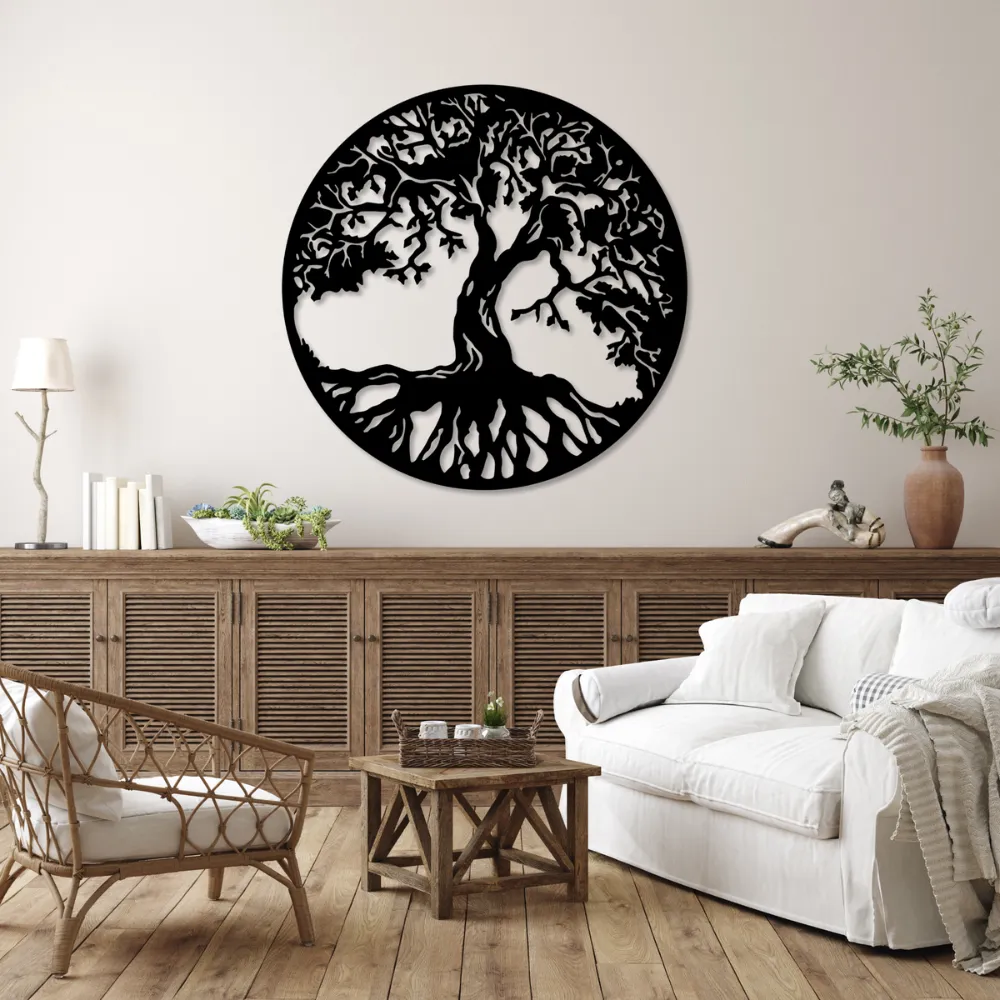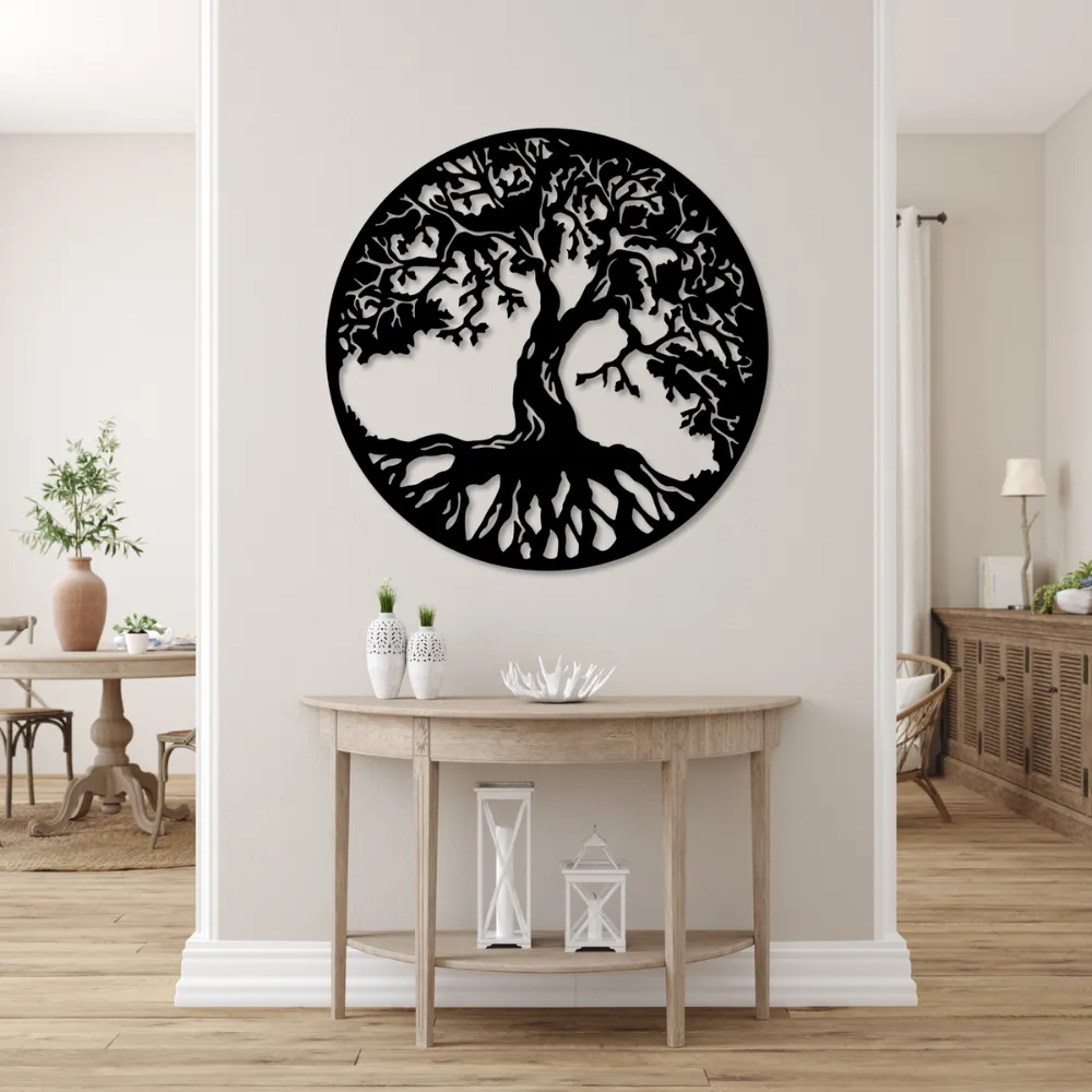 „Drzewo życia” to jeden z najbardziej uniwersalnych i rozpoznawalnych symboli – oznacza wzrost, siłę, stabilność, rodzinę i cykl życia. W wersji okrągłej podkreśla harmonię i równowagę. Doskonale sprawdzi się jako dekoracja: