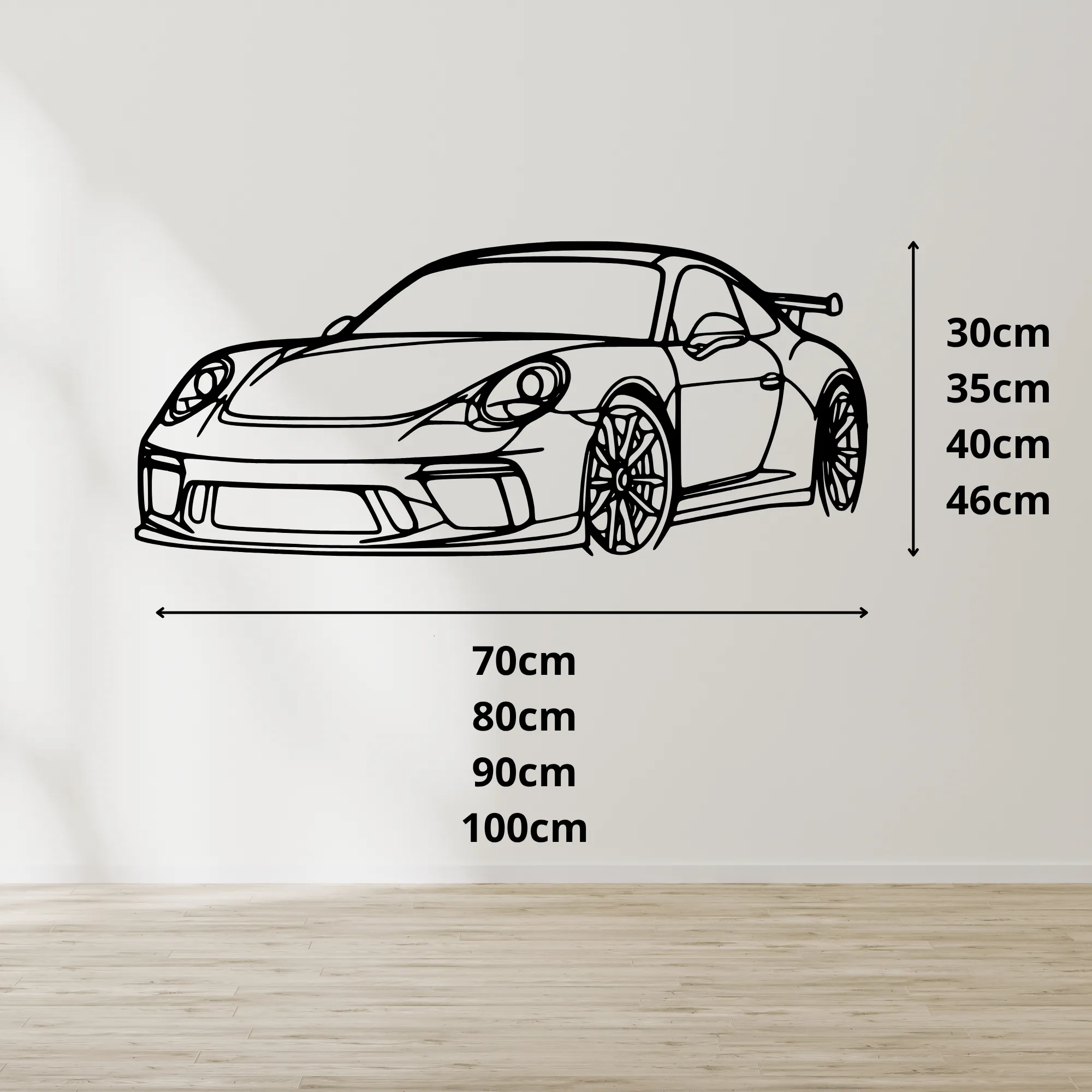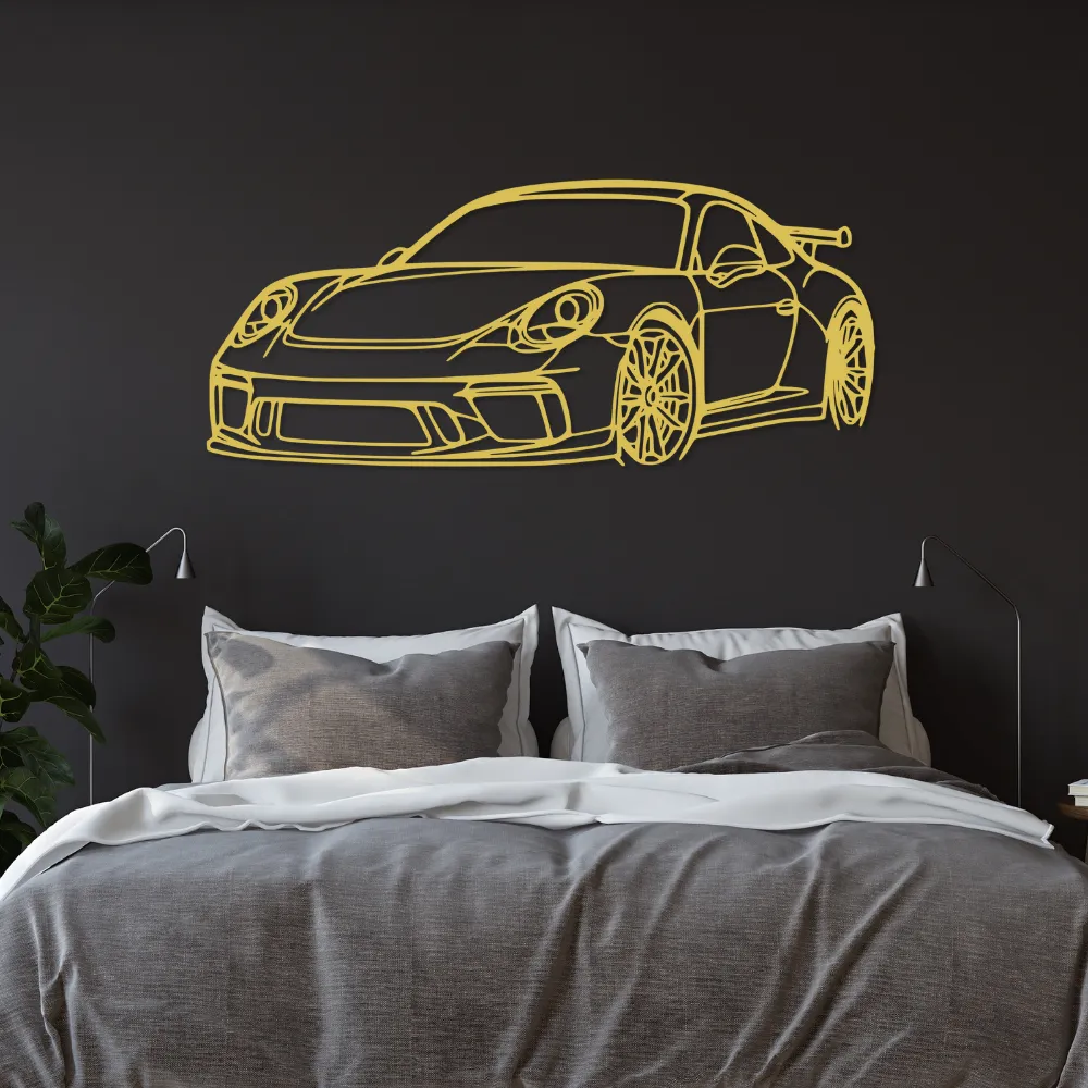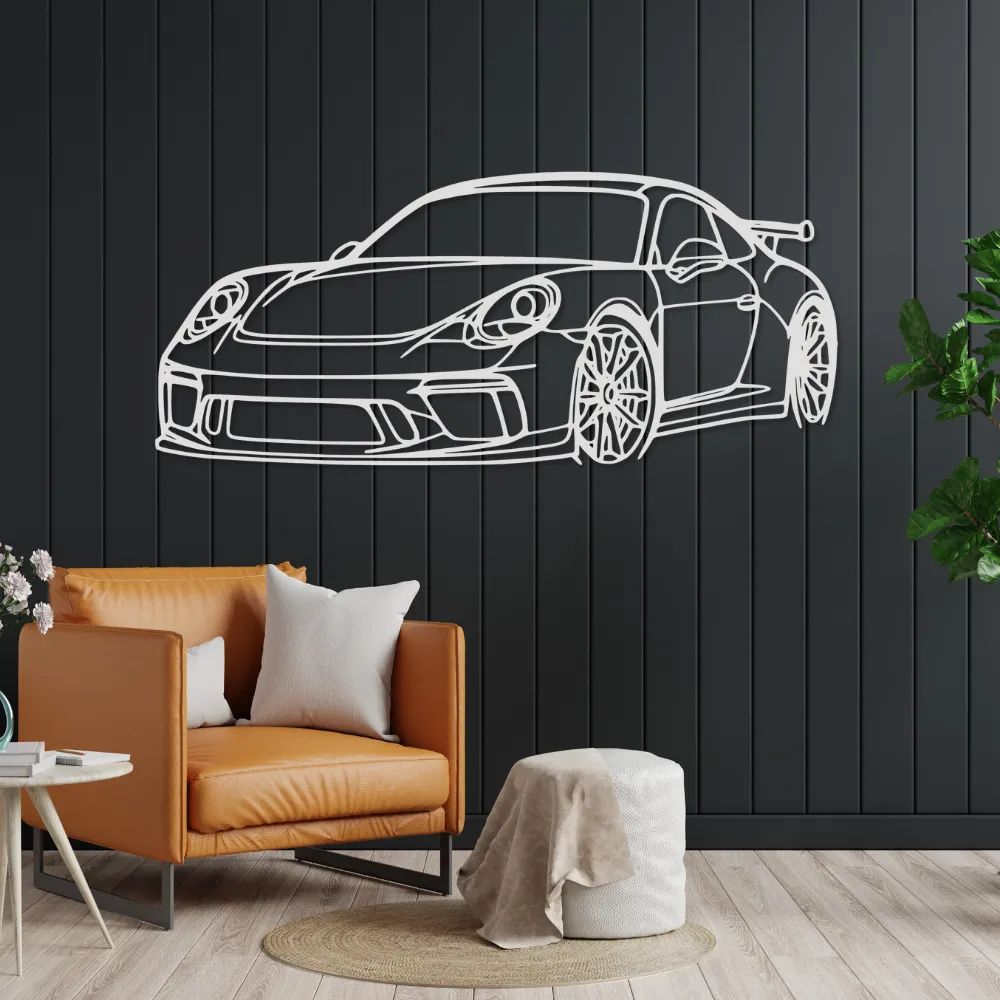Dodaj wnętrzu dynamicznego charakteru dzięki obrazowi ściennemu "Porsche 911 GT3" – precyzyjnie wyciętej sylwetce legendarnego modelu sportowego z płyty MDF o grubości 6 mm. Ta nowoczesna dekoracja to must-have dla miłośników motoryzacji, wyścigów i stylowego designu.