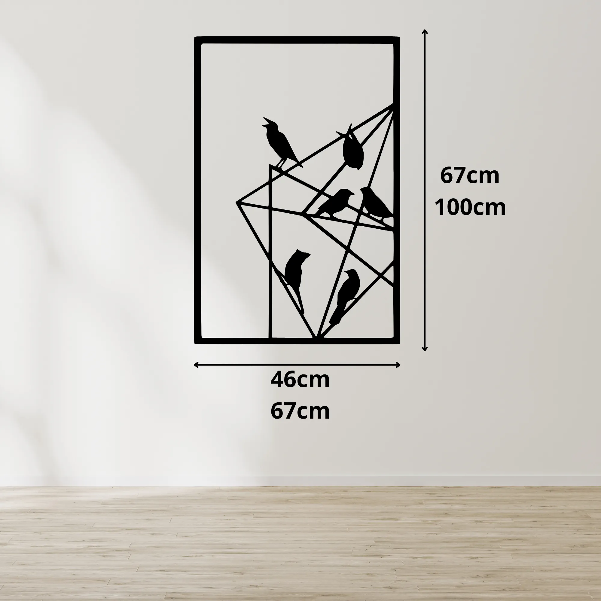 Obraz został wykonany z wytrzymałej, a zarazem lekkiej płyty MDF o grubości 6 mm, co gwarantuje trwałość i doskonałe odwzorowanie detali sylwetek ptaków. Idealnie gładkie krawędzie i subtelność formy podkreślają artystyczny charakter dekoracji.