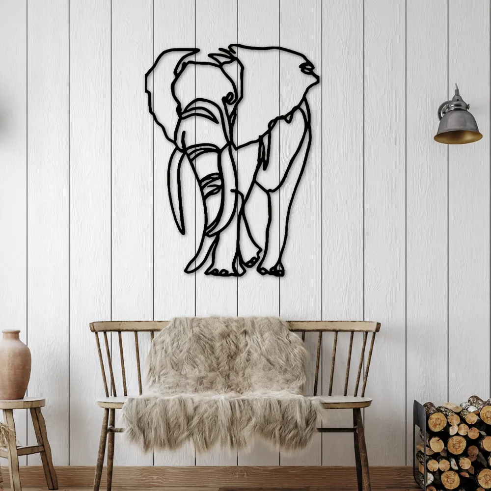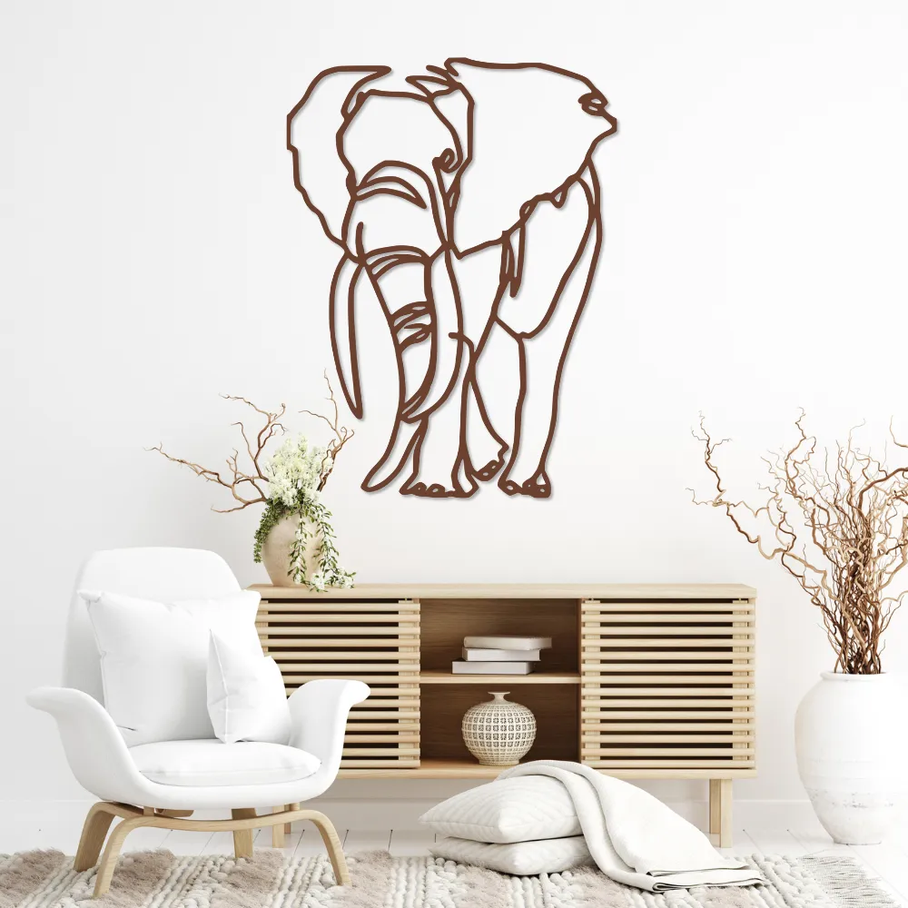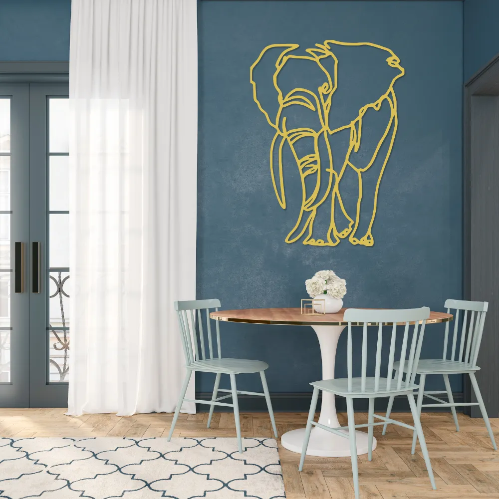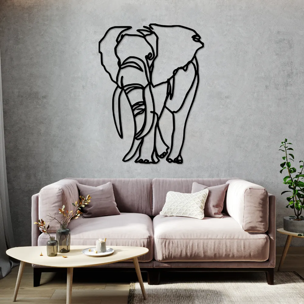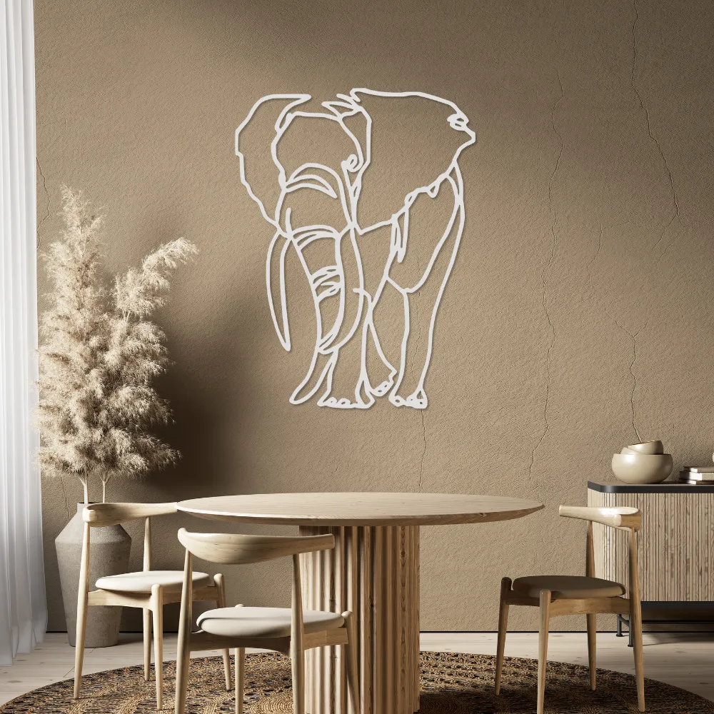 Sylwetka słonia w technice line art to symbol siły, mądrości i ochrony. Jego delikatne kontury tworzą subtelny, lecz wyrazisty punkt centralny każdego pomieszczenia.