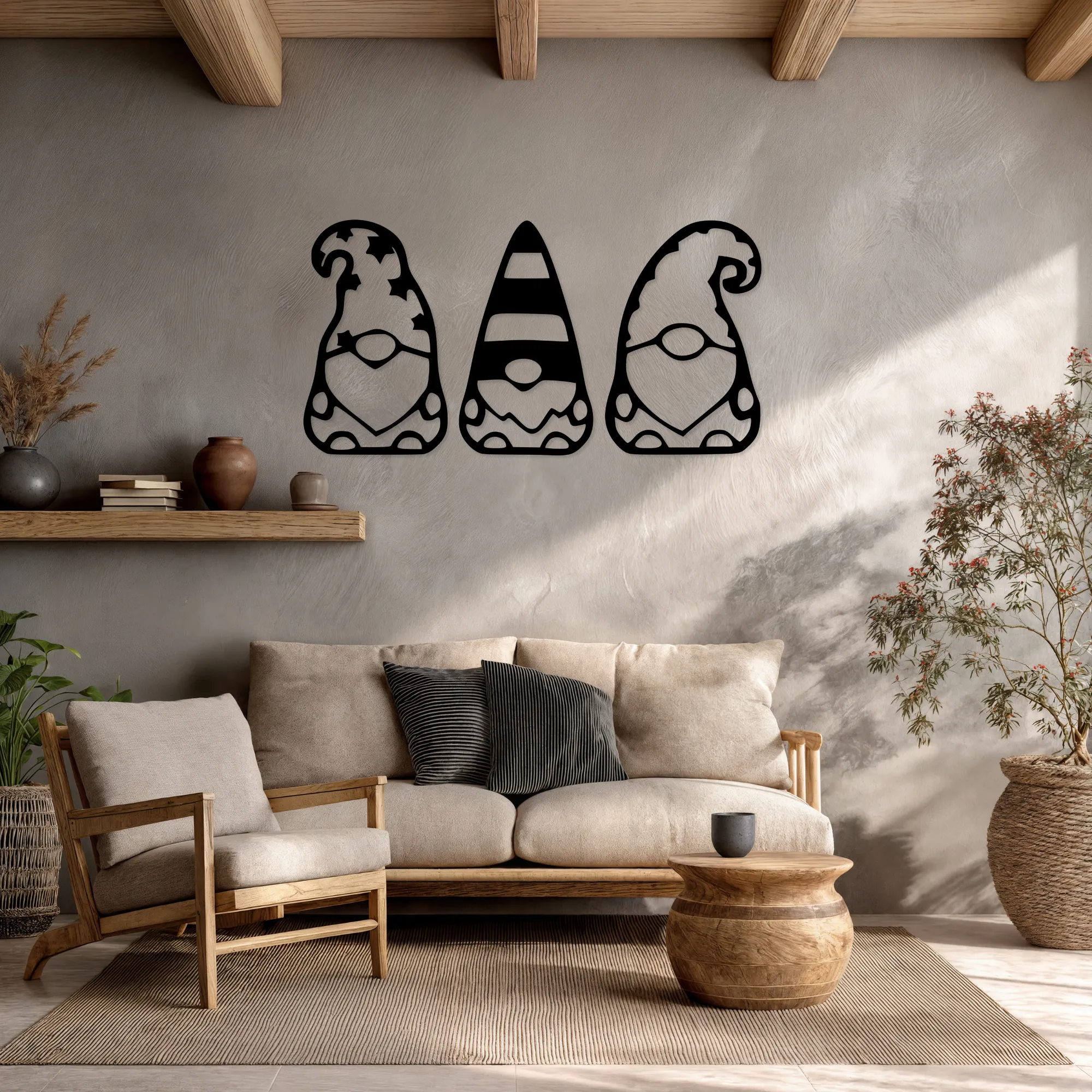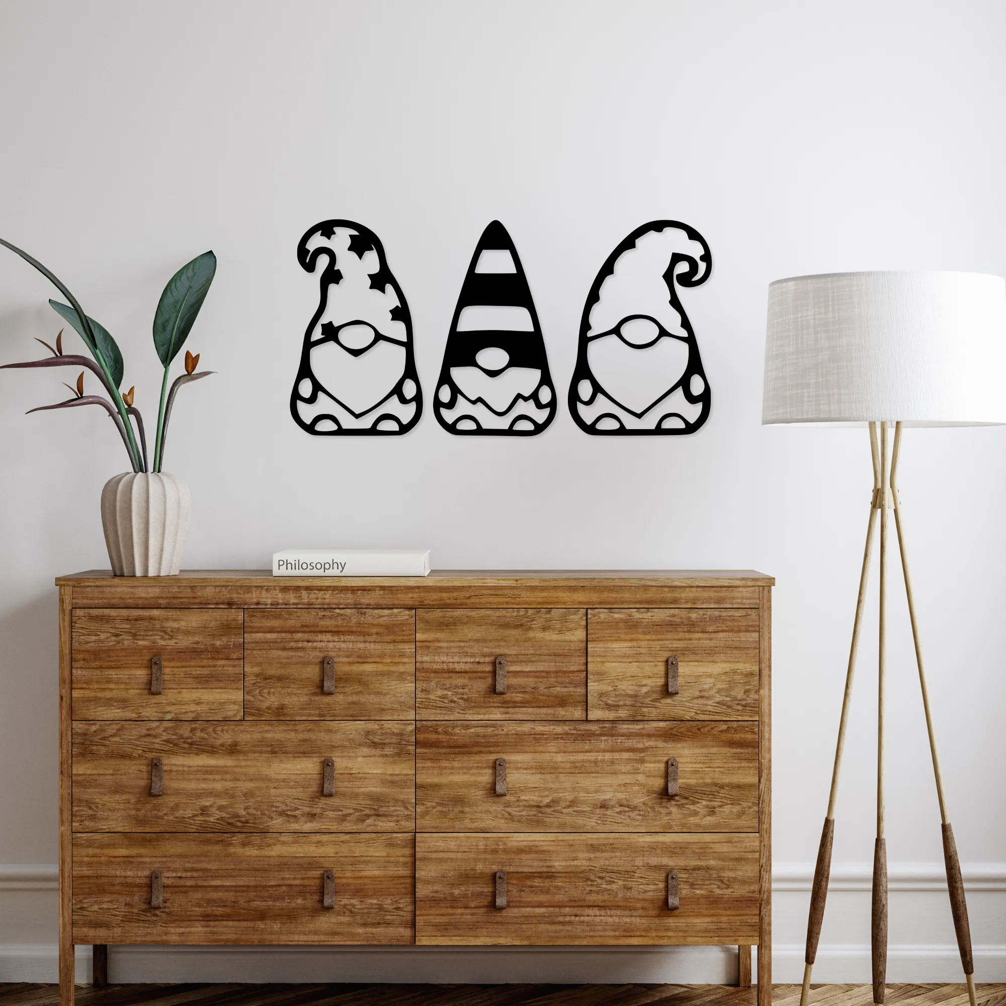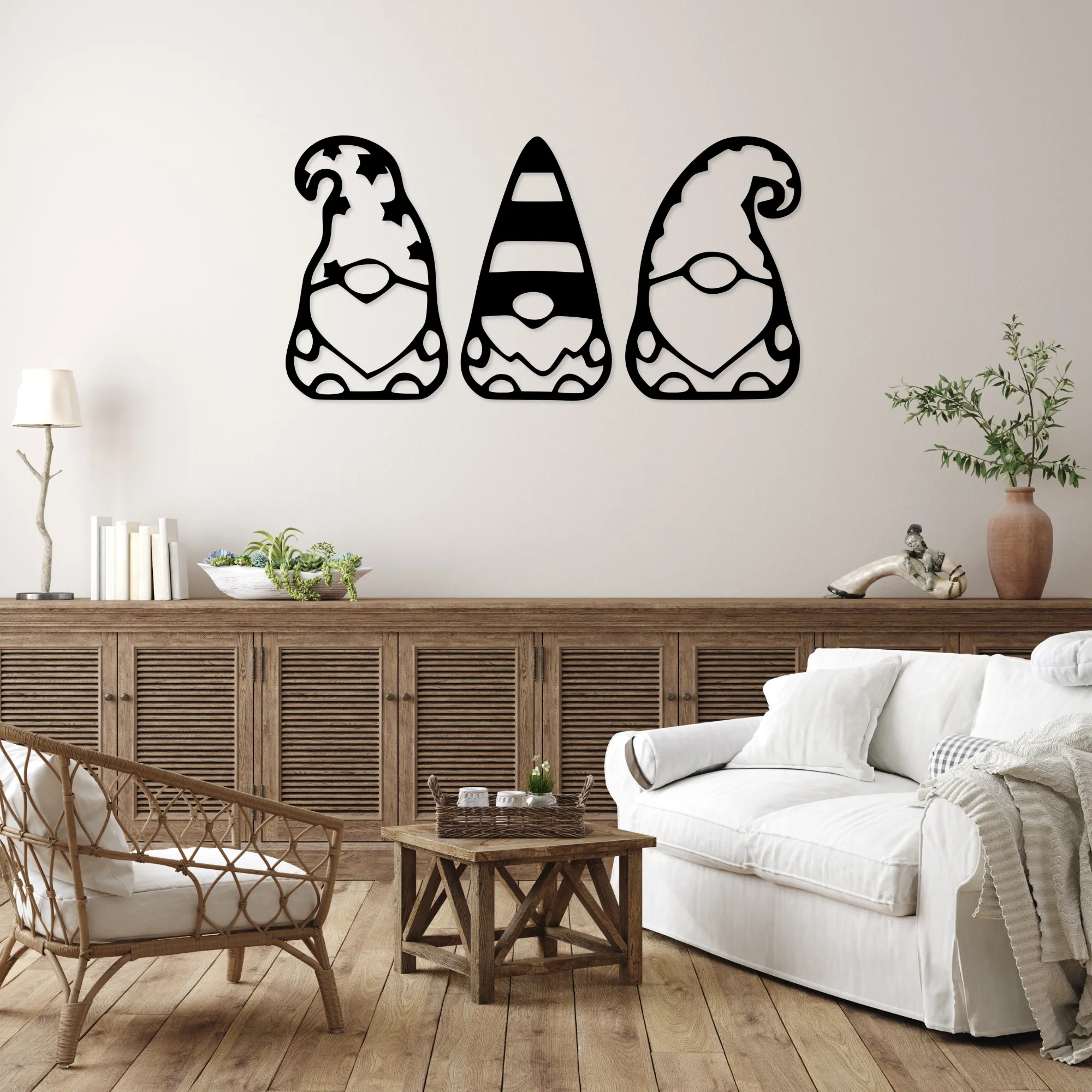 Drewniany ażurowy obraz 3D Trzy skrzaty to dekoracja, która wprowadza do wnętrza ciepło, radość i odrobinę magii. Sylwetki trzech skrzatów tworzą spójną, przyjazną kompozycję, kojarzącą się z domowym klimatem, spokojem i dziecięcą wyobraźnią.